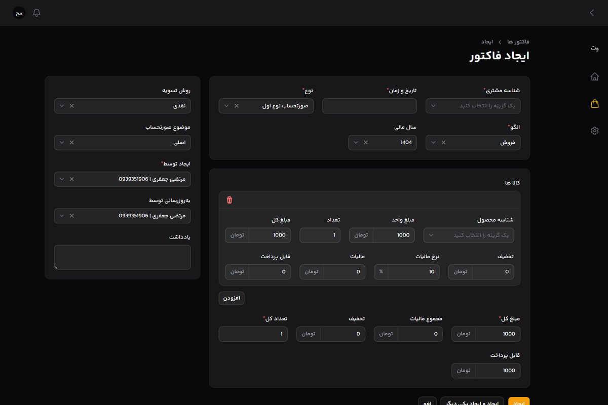 گزارشگیری پیشرفته: تولید گزارشهای مالیاتی دقیق و قابلارائه به سازمان امور مالیاتی.